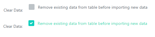Clear Data allows you to delete, drop, or truncate all data stored in a Table before importing new data. It can only be completed during the Import process or via an API command.