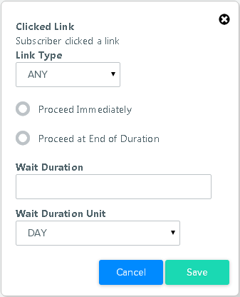 - Proceed Immediately: As soon as a Contact has clicked, move to the Yes branch of the workflow. At the end of the Wait Duration, move all Contacts that have not clicked to the No branch.