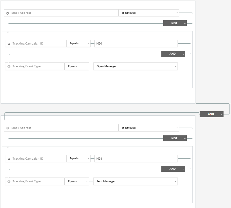 - Set the Operator between rule 1 Email Address and the group below to NOT.