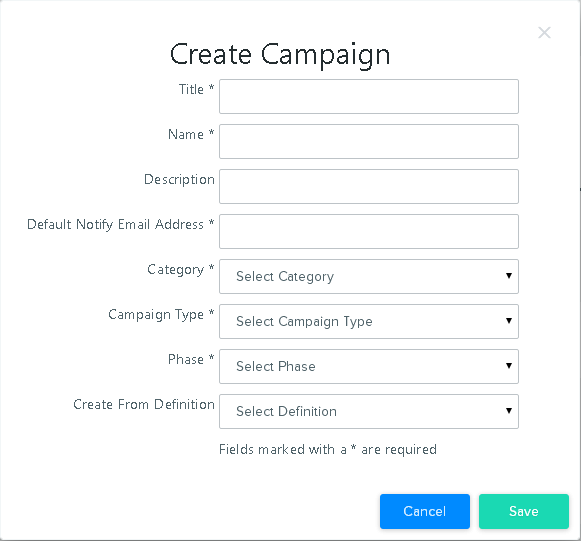- To create a new Campaign based on a pre-defined workflow, select a Definition from Create from Definition.