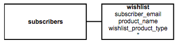 The wishlist table stores all data for the items in the contact’s wish list. This includes basics like product name and other product specific information (e.g. how many in the wishlist, current price, and description).