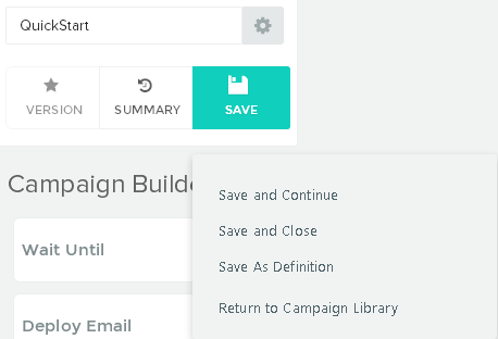- RETURN TO CAMPAIGN LIBRARY to ignore changes and close the Automation Builder without saving.